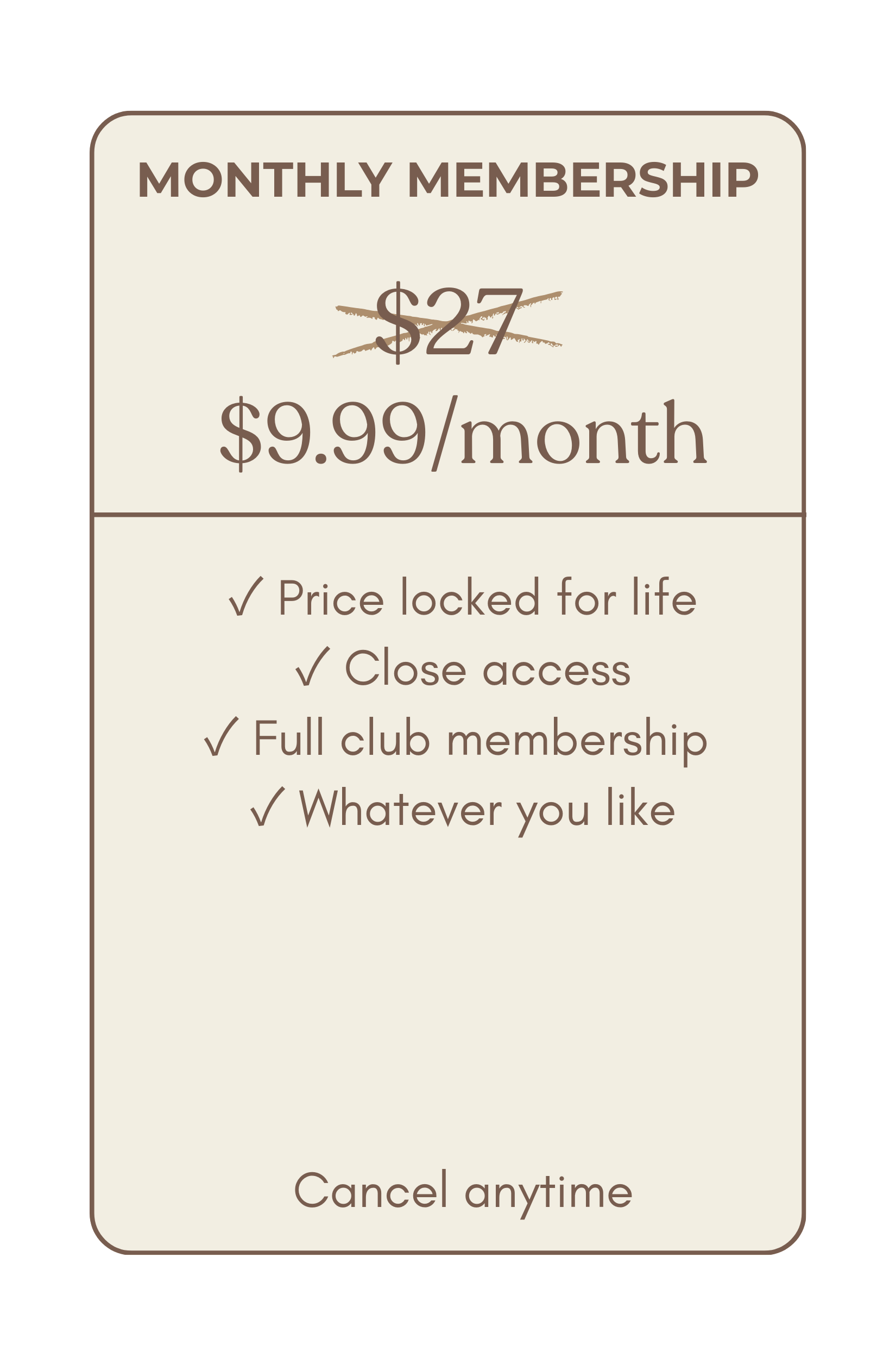 I’m inviting just 30 women to join the club as founding members. Because this will be a small founding circle, those women will gain closer access to me, help shape the early direction of the community, and lock in the founding member price before the club opens publicly.